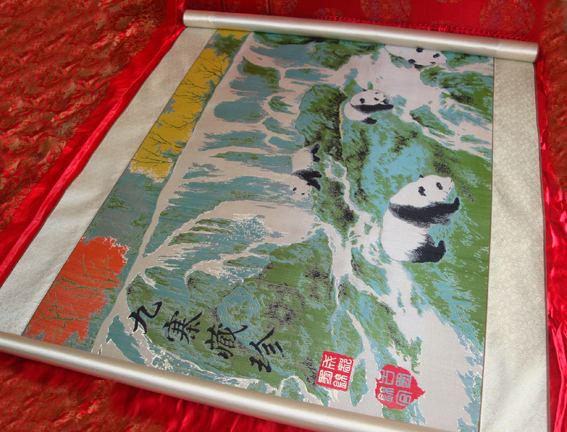 特大号四川特色工艺品古蜀锦九寨珍藏熊猫四川特色工艺品代表产品,是古蜀锦中的精品其中体现了整个画面层次鲜明,色彩丰富绚丽,整幅锦画大气,韵味十足,具有蜀锦丰富的文化内涵和欣赏收藏价值,是送朋友和客户之首选,也是极佳的个人收藏品和欣赏品,绝对让人流涟忘返.