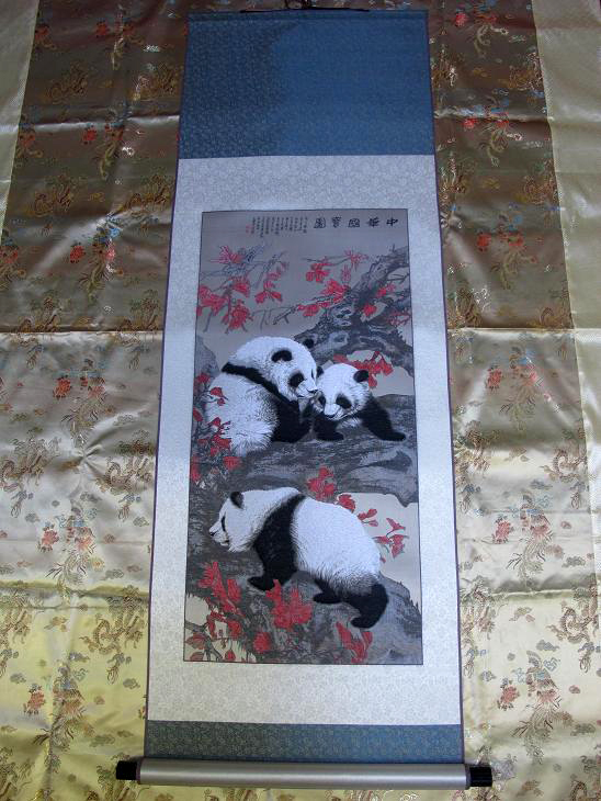 此幅作品,色彩柔和,立体感强。国宝大熊猫神态生动形象,整幅作品展现出和谐吉祥的画面。是企业、单位首选礼品。