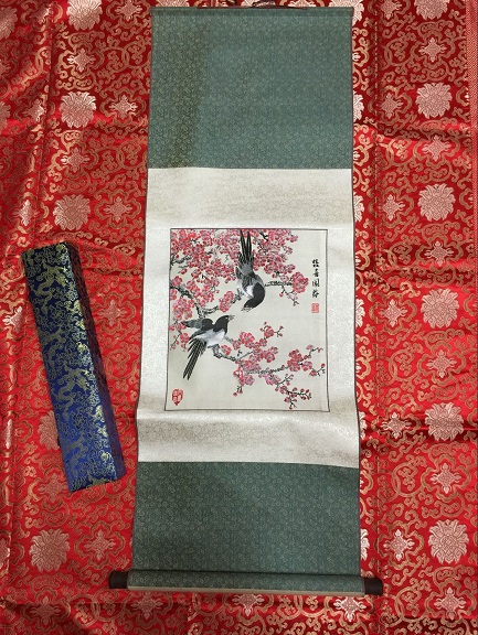 传统蜀锦采用的是传统手工挑花结本, 过花, 手工编连上百上千上万纸样纹板,和上机织造为主,锦画表现形式重彩工笔画。彩墨成块面型状的画,色彩愈多的画优势愈明显;传统蜀锦:1、色彩明快鲜艳;2、画面具有浮雕立体感;3、不同角度欣赏锦画光线会折射出不同的色彩,惟妙惟肖。